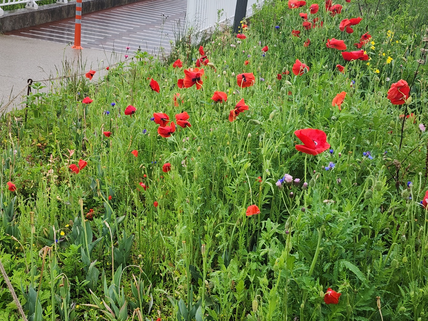 촉촉한 땅에 오가는 사람들을 위한 난타나 외 예쁜 꽃도 심었습니다.