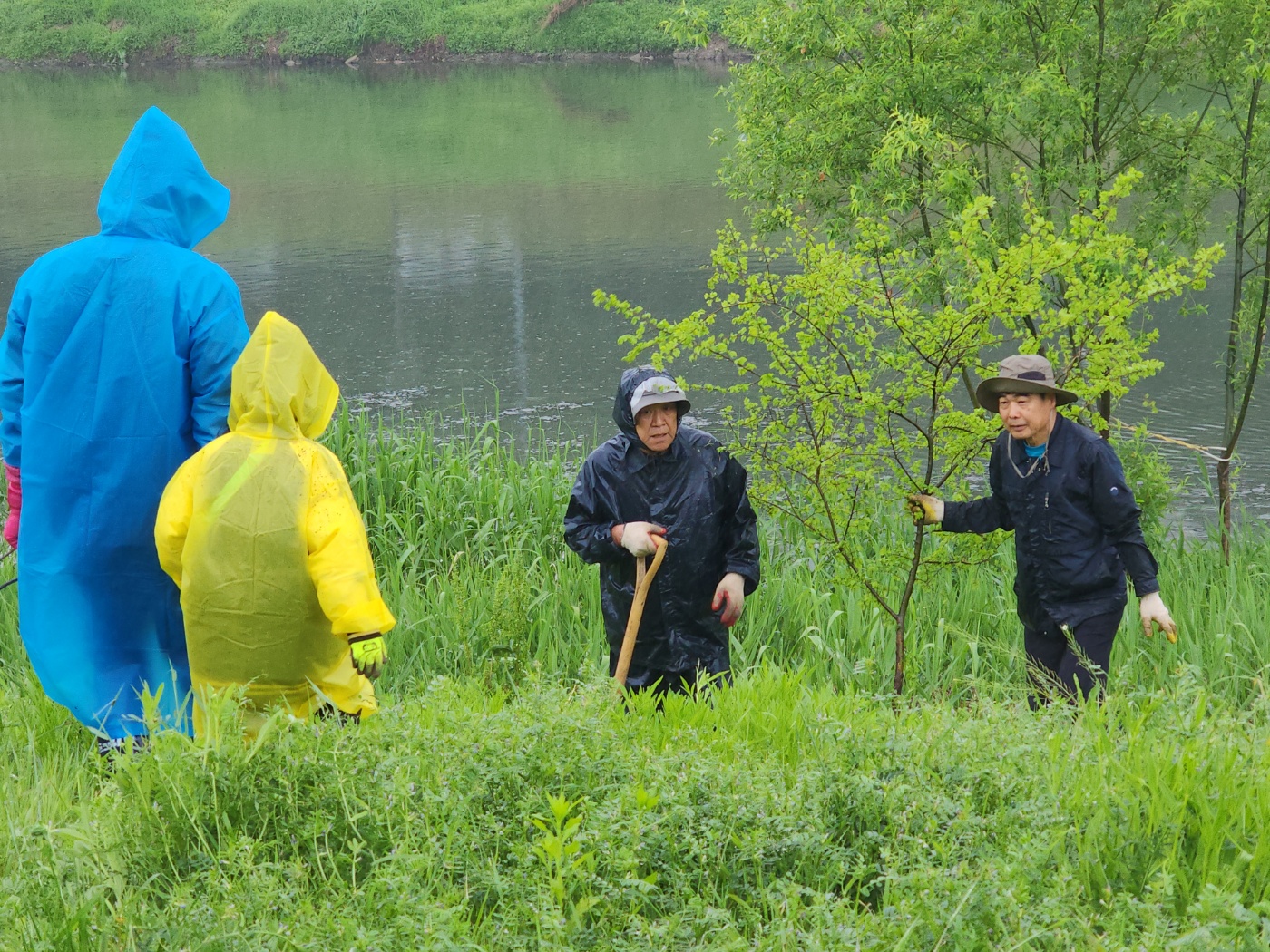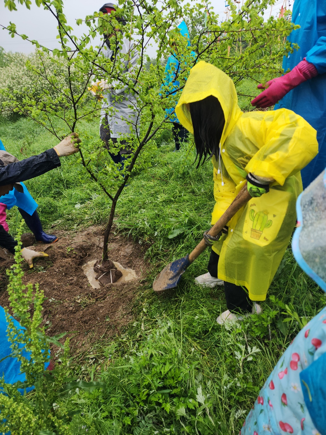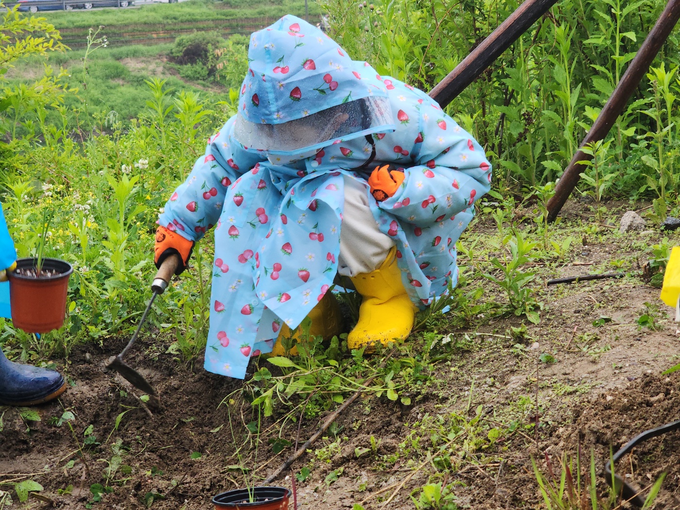 준비한 수국도 민권식 위원장님이 삽목하여 키워낸 난타나도 명재성 선생님이 씨앗부터 발아시켜 키워온 수호초와 루드베키아와 꽈리도 비가와 신난듯 합니다. 촉촉한 대지에 뿌리를 더 잘 뻗어갈 수 있어서 그럴 것입니다.