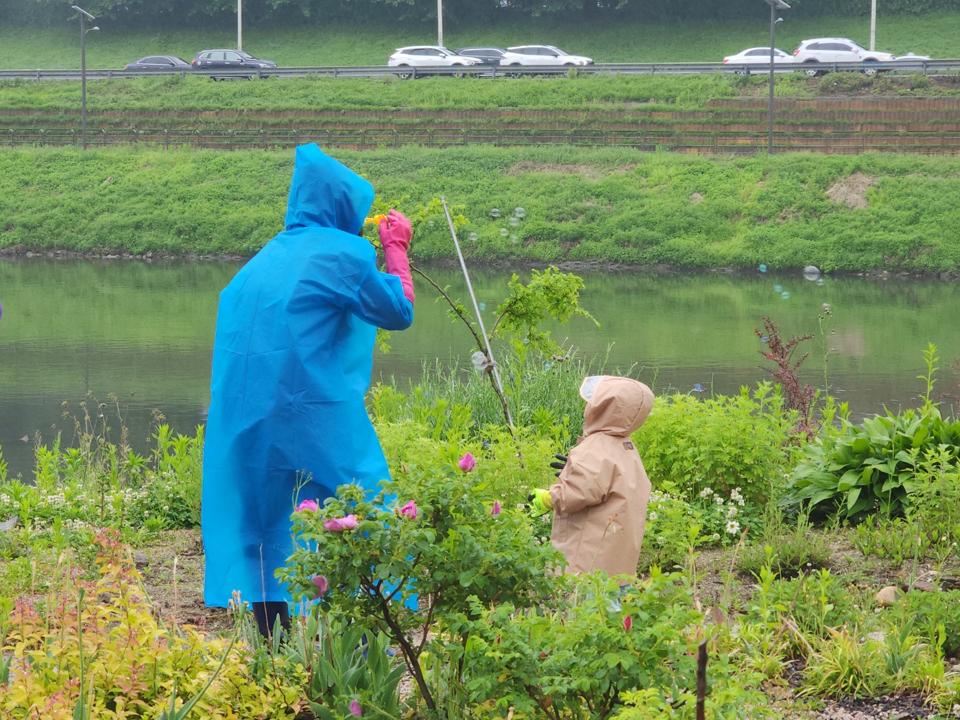 비오는 날 더 아름다운 빛깔로 빛나는 중랑천, 야생동물의 행복한 삶터가 되길 바라봅니다.