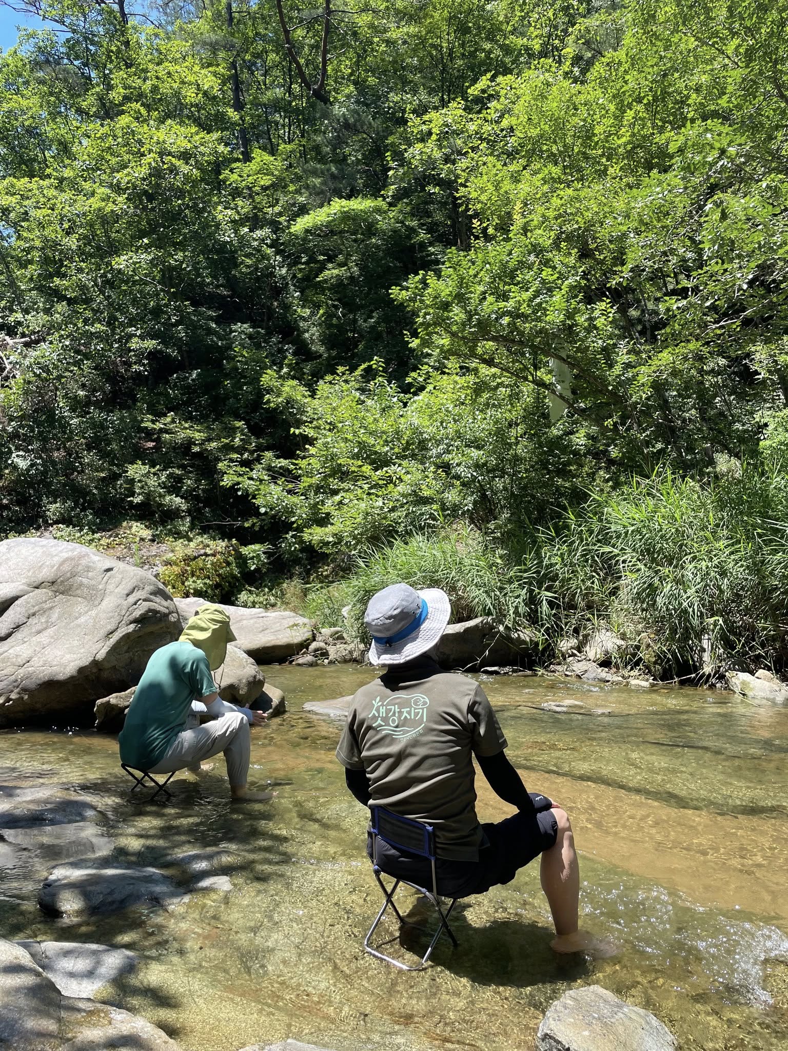 그래도 가자, 용감참가자들도 있었지만 무더위에 참가자 특성을 고려해 판단이 필요했습니다. 사전 준비/안내 부족했습니다. 죄송하지만 우리 지금은 계곡을 즐기고 이 지점에서 회군합시다! 사고 없이 다같이 즐거워야 아름답지 않을까요? 3년여 유람단 역사 중 첫 회군의 불명예이기도 하지만, 그래도 옳은 결정이었다 믿습니다~