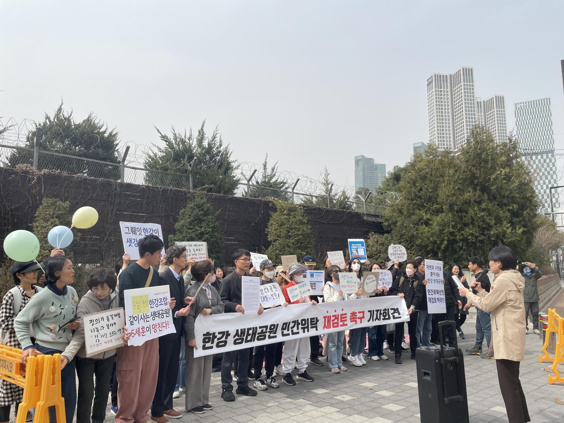 우리의 질문들에 대해 진솔하게 답변하기 바란다. 난지, 여의도샛강, 야탐, 고덕, 암사생태공원...이 곳들을 고향삼아 살아가는 수달과 맹꽁이가, 물총새와 박새가, 잉어와 참게가, 그리고 이런 작은 존재들을 사랑하는 시민들을 프로그램 업체는 여전히 사랑하고 지켜줄 것인가? 사랑의 약속이 없다면 우리는 결코 떠나지 않는다. 우리는 이 작은 존재들에게 지켜준다는 약속, 사랑의 언약을 했기 때문이다.