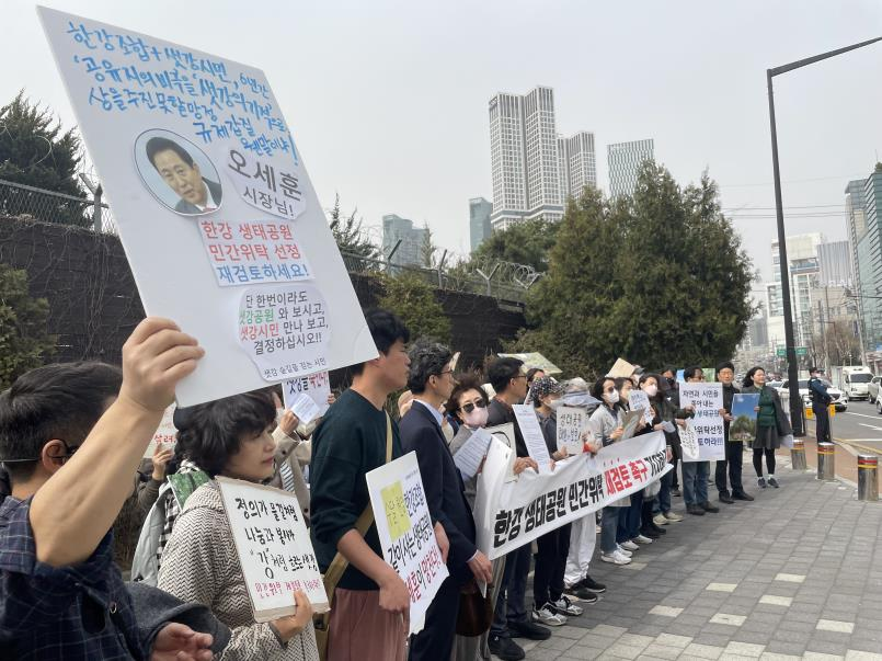 생태공원 민간위탁이 프로그램 해설만으로 운영된다면 어떻게 될까? 창궐하는 가시박과 환삼덩굴, 단풍잎돼지풀은 누가 치우는가? 매년 수천 명의 자원봉사자들은 누가 안내하고 함께 일하는가? 생태공원을 고향삼아 한강에 다시 돌아온 수달들은 누가 지켜주나? 생태공원에서 인문학을 배우고 축제를 즐기고 음악회에 기뻐하며 생태공원이 고향이고 집이라고 부르는 사람들은 고향을 잃고 어디고 가야 하는가?