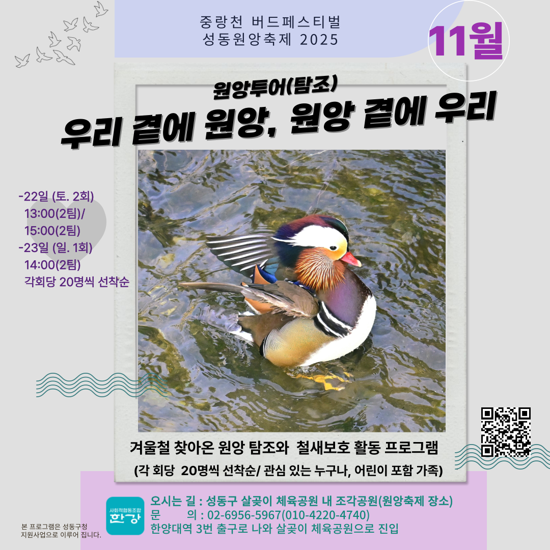 중랑천 버드 페스티벌 성동 원앙축제 2025 중 진행되는 원앙투어(탐조)