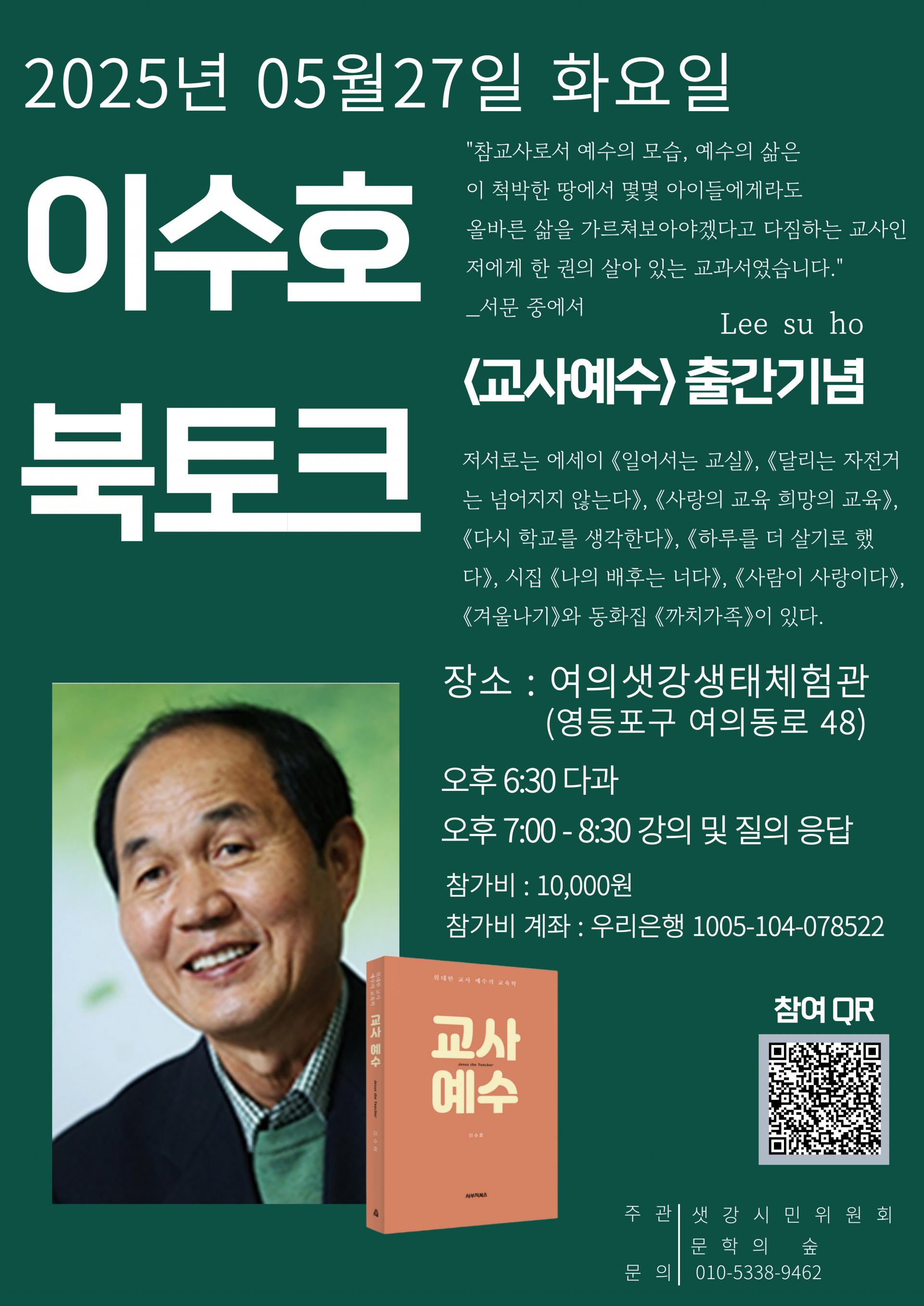 문학의 숲과 주관샛강시민위원회가 함께하는 특별 강연,