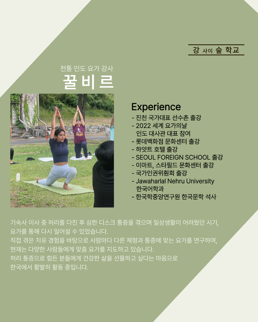 정통 인도요가 꿀비르 강사님과 자연과 내가 하나 되는 시간을 선물합니다.